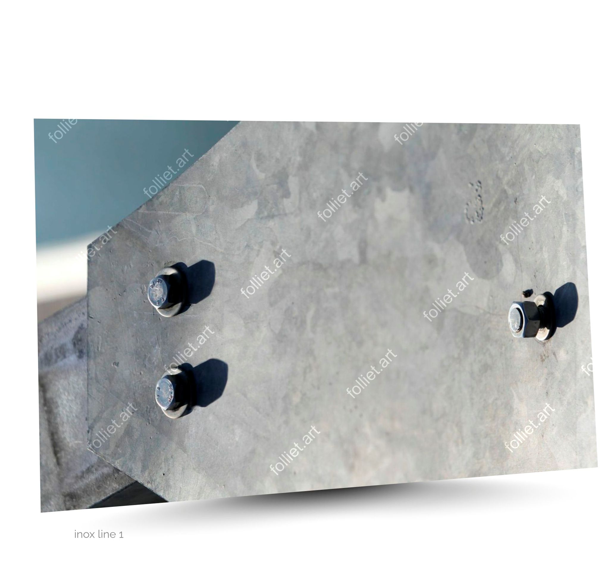 ステンレスライン1:日光の下でコンクリート板を固定するボルト – ジャン=シャルル・フォリエ署名のアート写真
