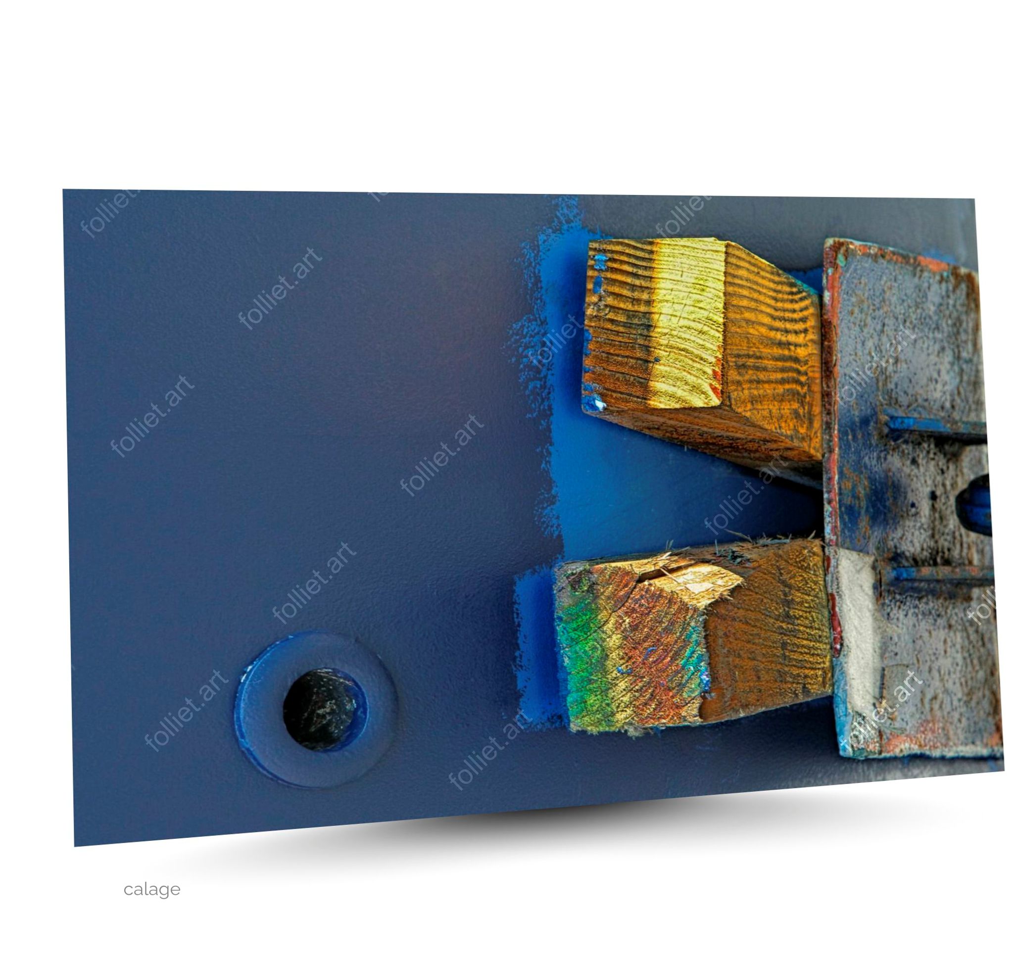 定位:带涂漆表面和鲜艳色彩的木船垫块 – 由让-查尔斯·福利埃签名的艺术摄影
