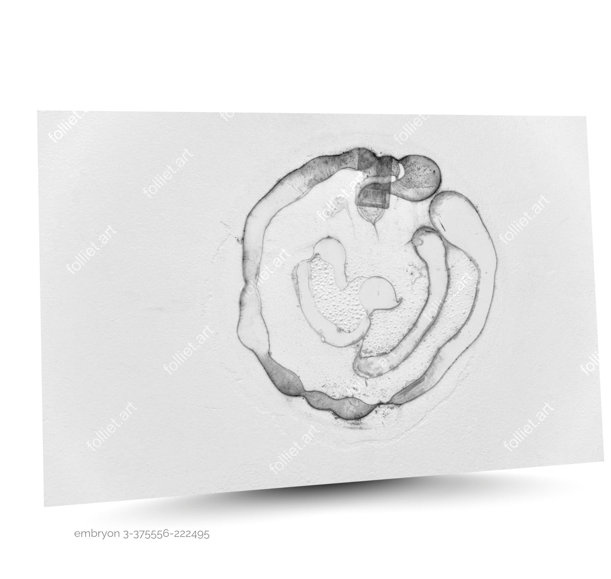 الجنين 3-375556-222495: عمل فني دائري مجرد على خلفية بيضاء مع نسيج مفصل ورمز شريطي – تصوير فني موقع من جان-تشارلز فولييه