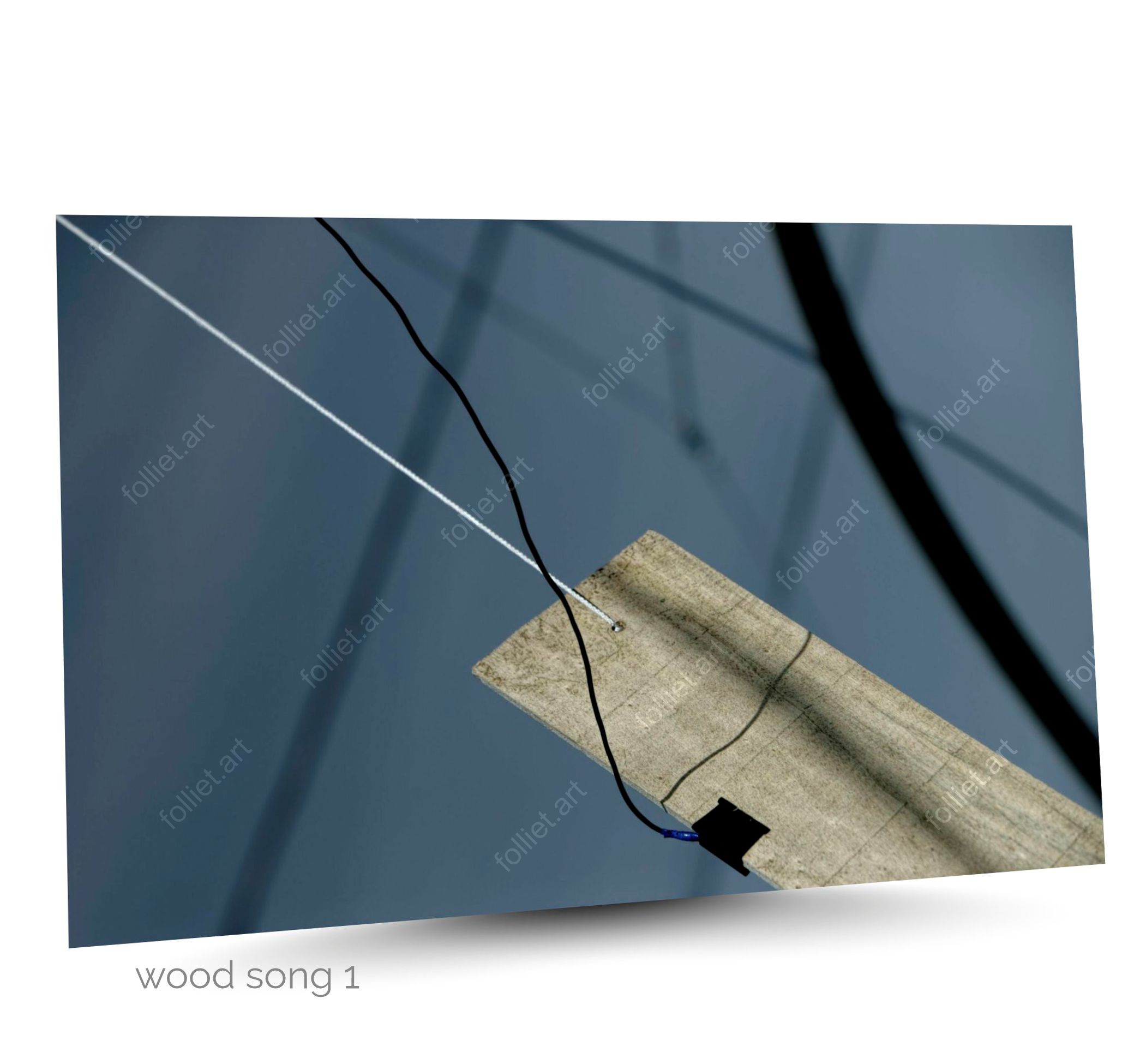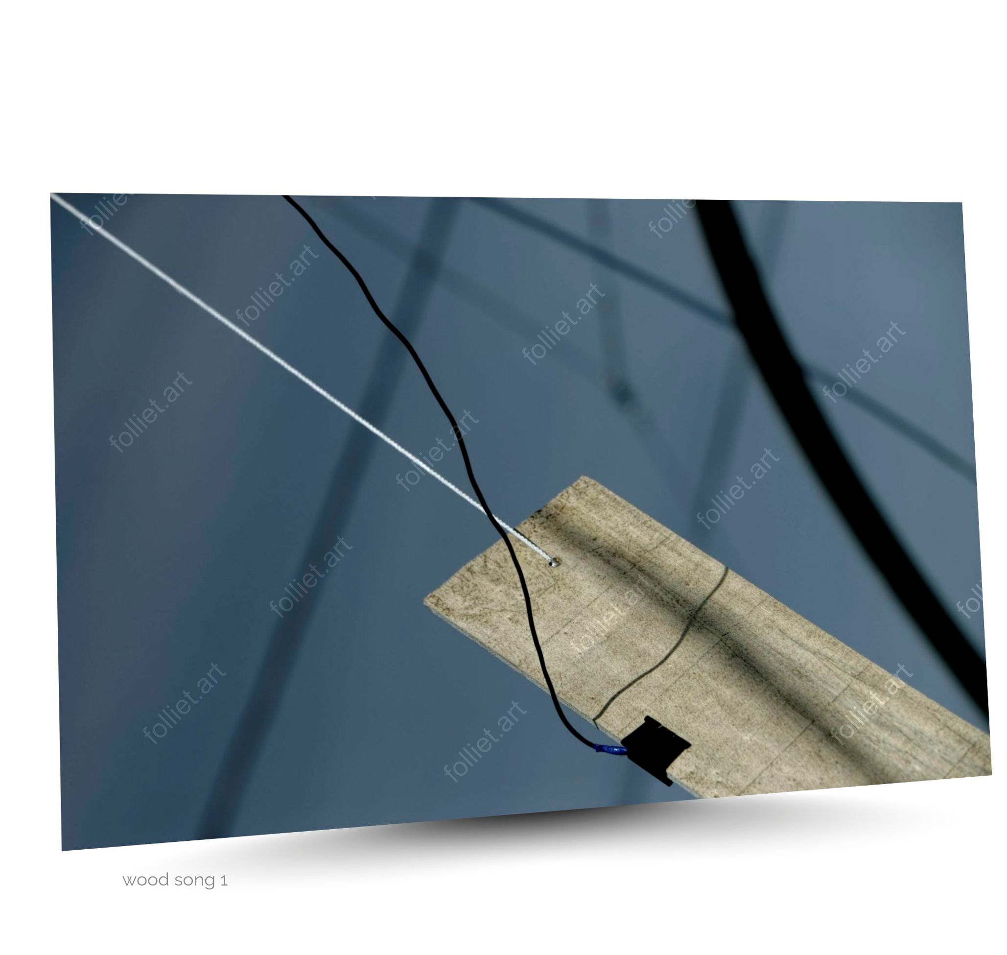 Wood Song 1: धुंधले आकाश के नीचे ओवरलैप होते तारों और तख्तों का अमूर्त दृश्य – जीन-चार्ल्स फोलिएट द्वारा हस्ताक्षरित फाइन आर्ट फोटोग्राफी