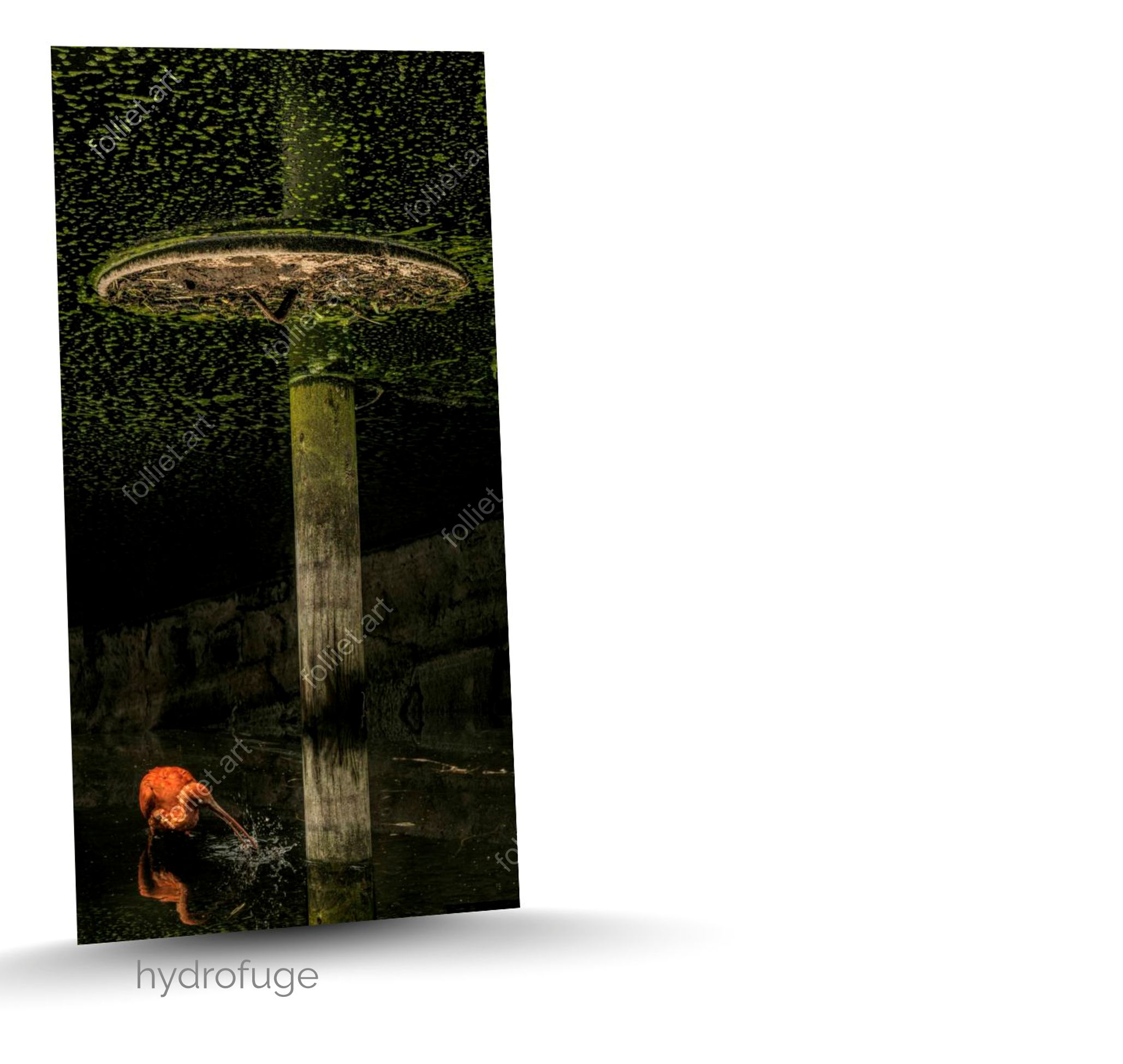 hydrofuge : Ibis rouge tapotant la surface de l’eau avec son bec – photographie d’art signée Jean-Charles Folliet